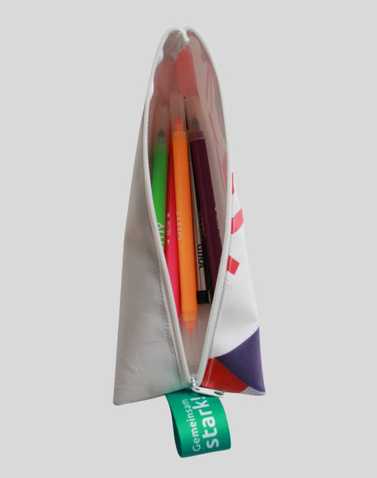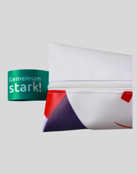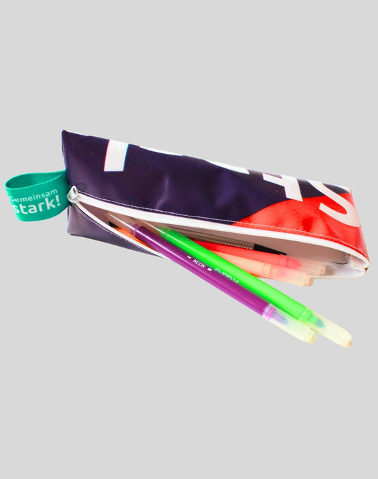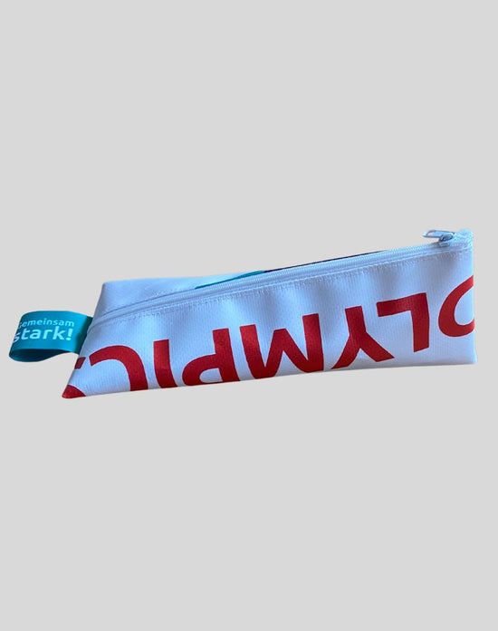 Federmäppchen aus recycelter Bannerplane der Winterspiele 2024
